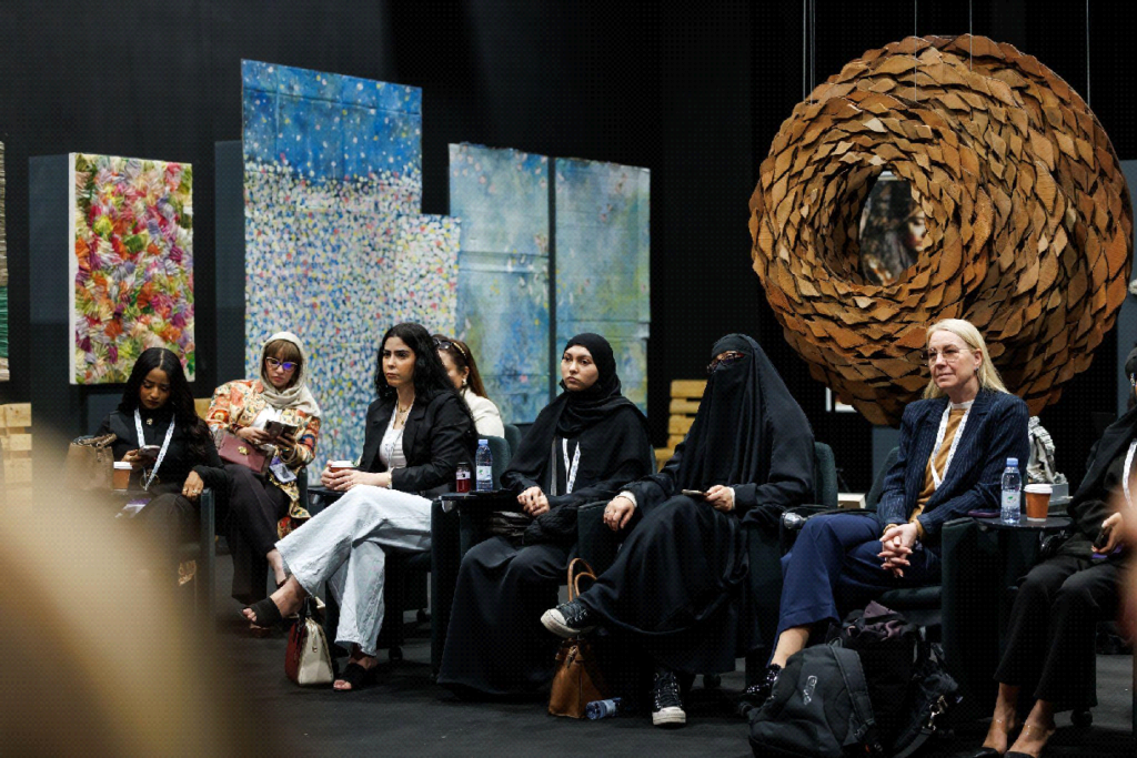 The Forum concluded with the Creative Women Art Exhibition, curated by Rafael Porzycki and powered by DHL Saudi Arabia. The exhibition aligned with Saudi Arabia’s Year of Handicrafts initiative and featured international artists including Aida Murad, Saule Suleimenova, Sofia Cacciapaglia, Elisa Insua, Fatimah Al Nimr, and Olivia d’Aboville. Proceeds supported the Herfa Cooperative Society, reinforcing a cultural continuity between heritage preservation and modern creative economies.